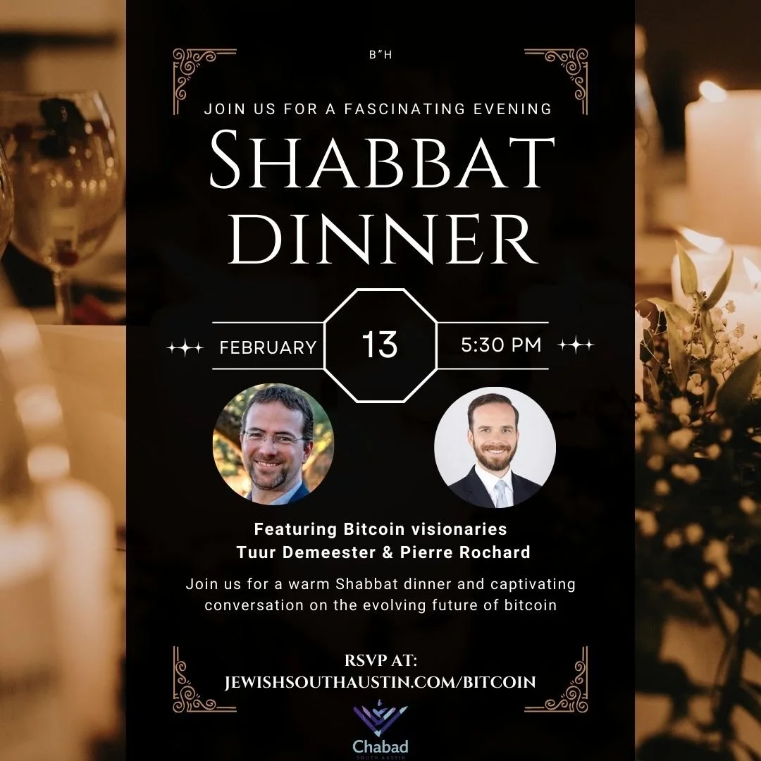 Join us for an uplifting Shabbat dinner with delicious food, inspiring conversation, and talks from Tuur Demeester and Pierre Rochard.